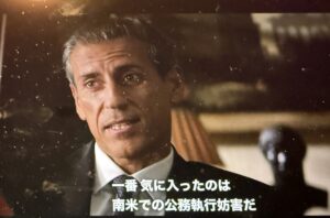 弁護士という男が入ってきて インターポールだと名乗り、いろいろ暴いて秘書を呼ぼうとインターフォンに手をかけた、その手をグサッ とした時に